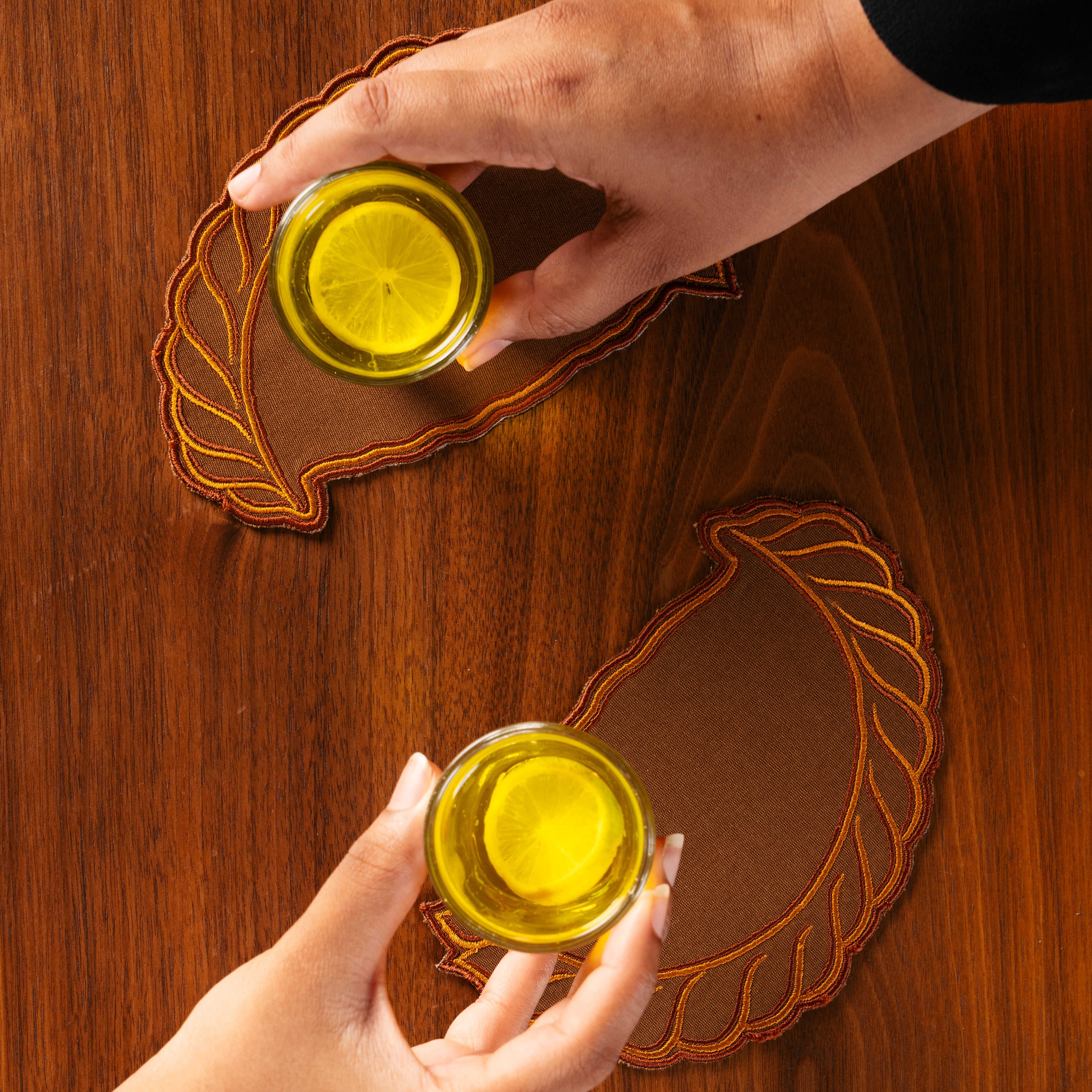 Handcrafted Cutwork Coaster with Brown Embroidery – Cotton Blend Dining Décor
